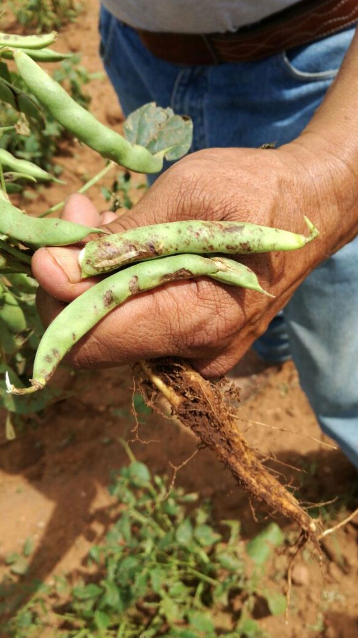 Urenda Uurenda mencionó que también se ha descubierto la presencia de otra plaga en las tierras frijoleras, la cual consiste en una espora que provoca una especie de "motas" (manchas) en las vainas de la planta".