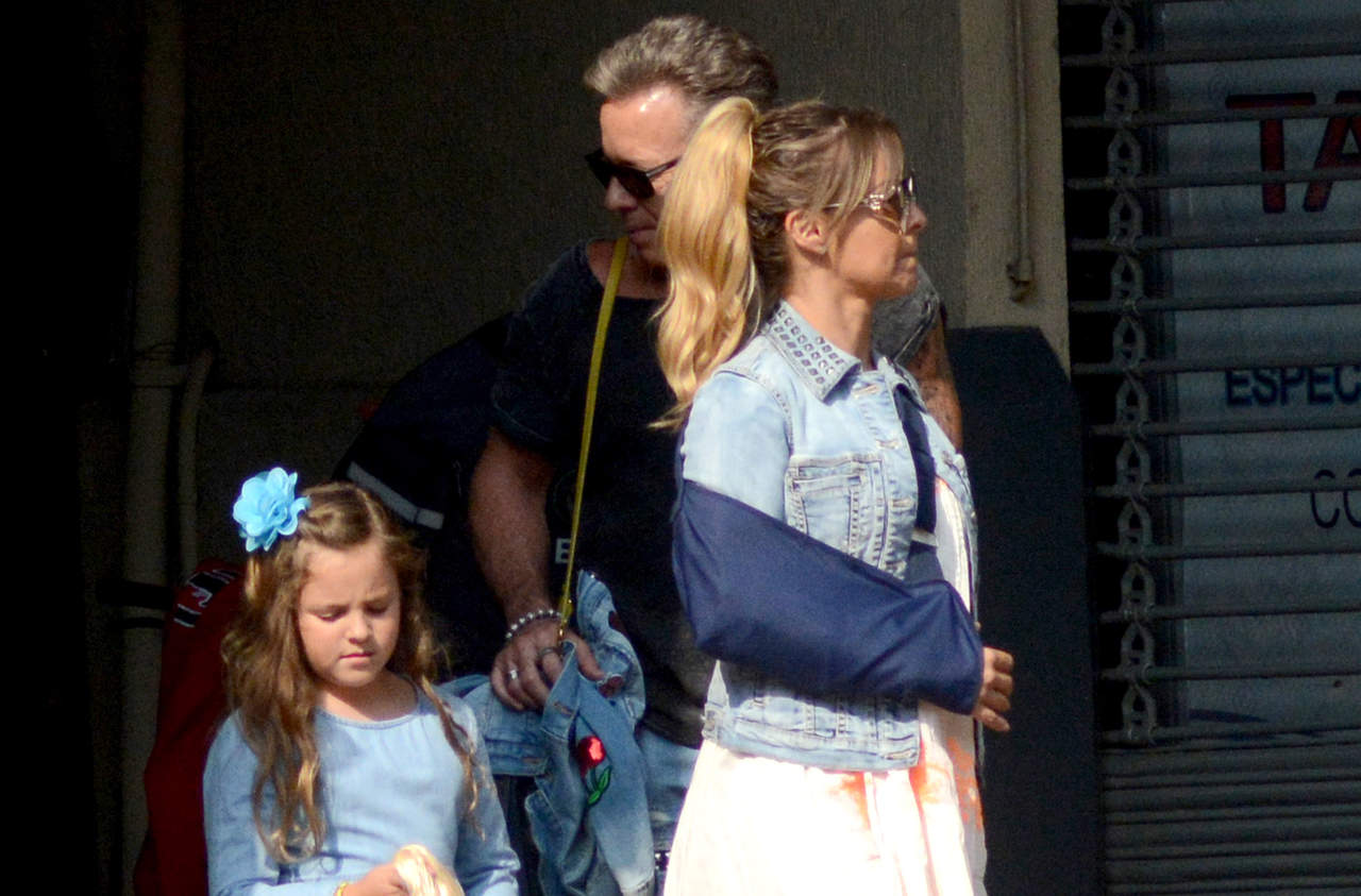 Sin embargo, este mal rato ha quedado atrás, pues durante el paseo que dio la pareja junto a su hija por las calles de la Ciudad de México, la también conductora apareció radiante con un look casual de chamarra, vestido, lentes oscuros y zapatillas, pero con un cabestrillo en el brazo derecho.