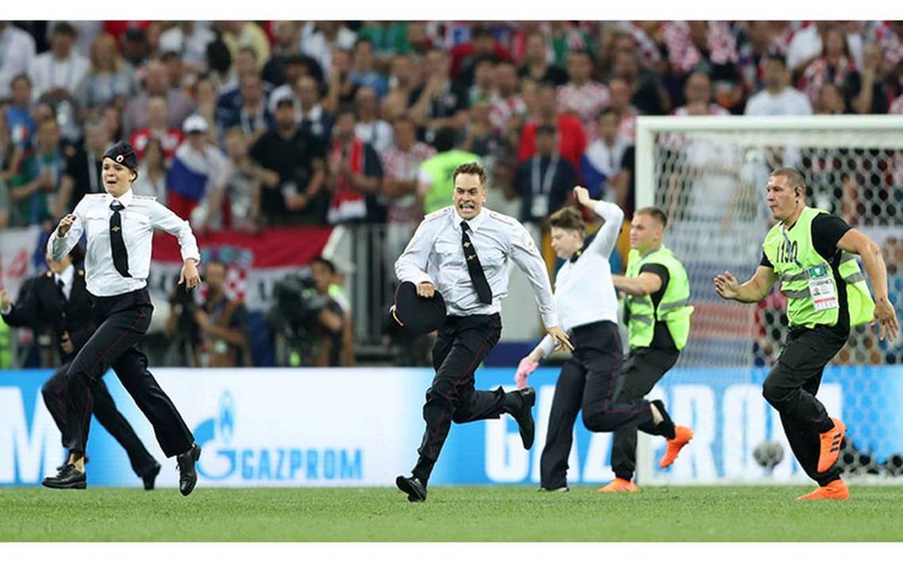 La joven Veronika Nikúlshina saltó al campo durante la segunda parte del partido entre Francia y Croacia, que terminó con victoria del equipo galo (4-2).
