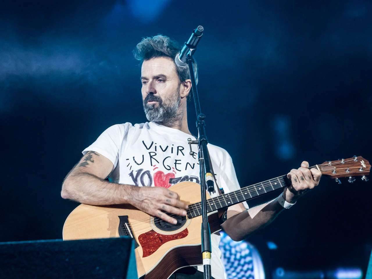 “Señorita, un respeto ¿no?, estamos cantando, estamos cantando” y agregó: “Váyase, no nos hagan más fotos, gracias, ya tiene usted bastantes ¿no? Estamos cantando para la gente no para usted, ya está ¿no? Entiendo que se quiera tomar fotos con nosotros, pero esto es un concierto”.