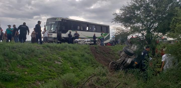 Iban a bordo de una camioneta de la marca Ford, línea Explorer, color verde, cuando al llegar al poblado 15 de Septiembre, se impactaron de frente contra un autobús (que invadió carril) marca Volvo, Trucks, modelo 2000, color verde con blanco.