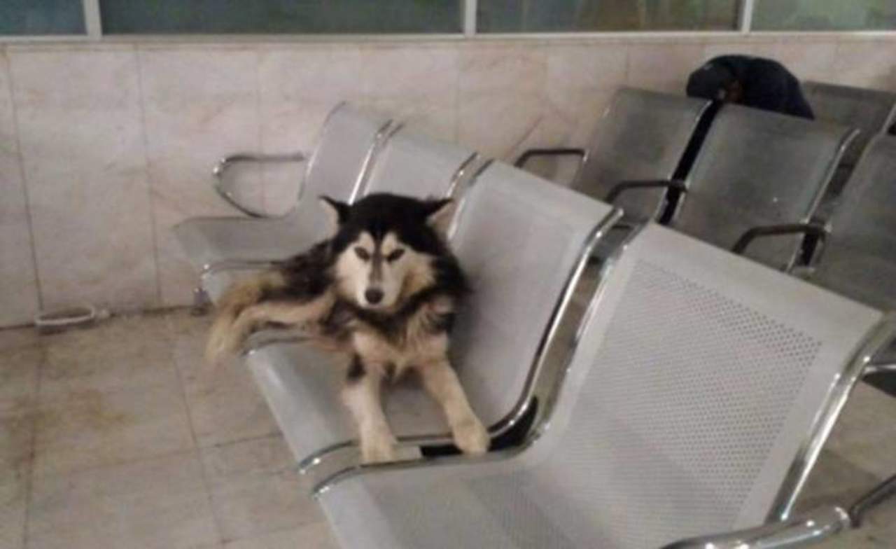 El perro de raza Husky, arribó en la Clínica 6 del IMSS en San Nicolás Garza, Nuevo León, después de que su dueño fuera trasladado a éste el lunes.