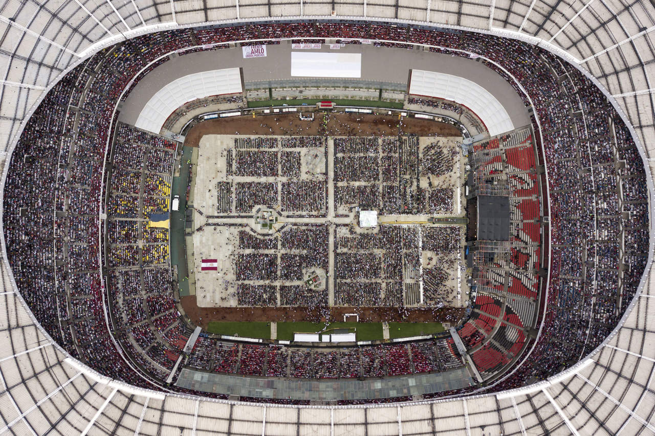 Andrés Manuel López Obrador, candidato de Morena a la presidencia de México, inició su cierre de campaña en las instalaciones del Estadio Azteca, con miras a los comicios del primero de julio.