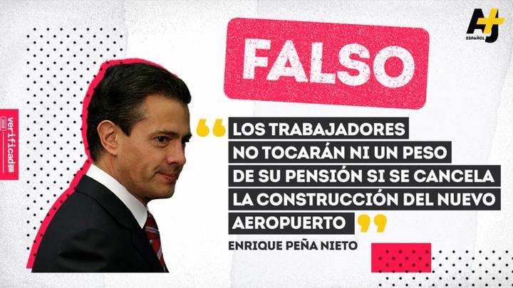 “Trabajadores no tocarán ni un peso de su Pensión si se cancela la construcción del nuevo aeropuerto: Amenaza Peña Nieto” (sic), advierte una publicación hecha en la página de Facebook No más PRI, que ha sido compartida casi mil 300 veces.