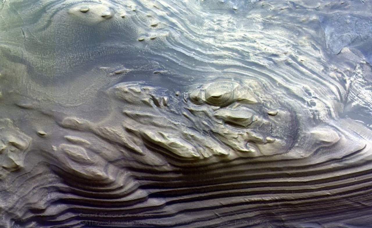 Una fotografía de una colina con sedimentos en Juventae Chasma, ubicado en el sistema de cañones más grande y profundo de Marte, Valles Marineris, fue revelada por la Agencia Espacial Italiana (ASI, por sus siglas en italiano).
