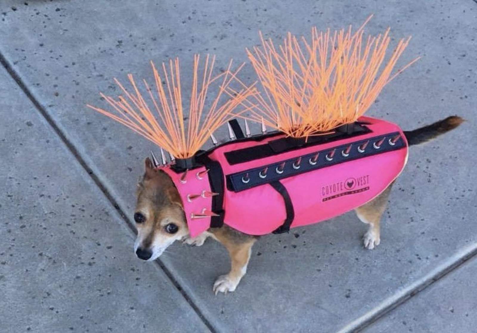 Amina Akhtar, una mujer en Texas, Estados Unidos, le puso a su perro un chaleco con espinas que funge como protector contra ataques de coyotes.