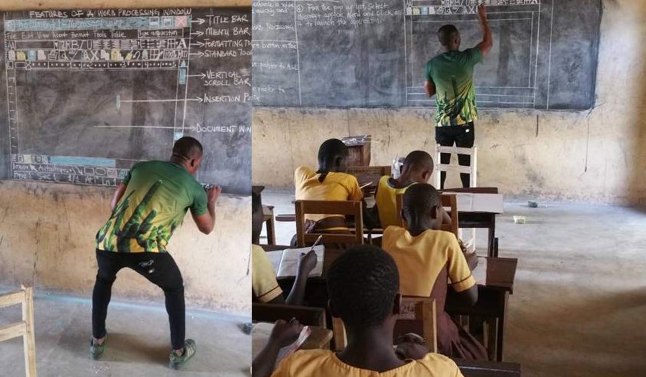 El maestro identificado como Owura Kwadwo imparte clases en una escuela rural de Ghana, la cual no posee computadoras que faciliten las enseñanzas de la tecnología actual, sin embargo, esto no representó un problema para el hombre.
