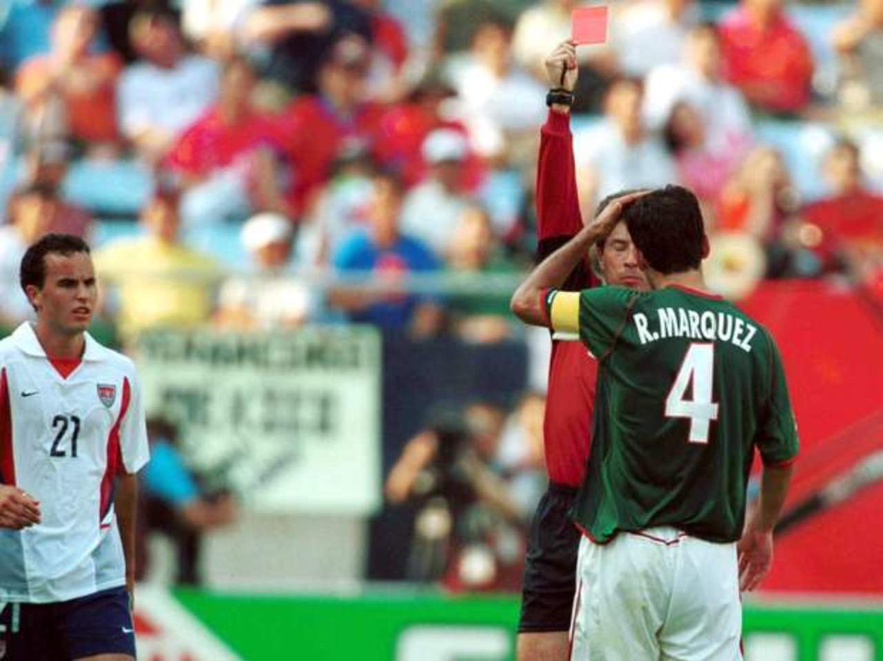 El "Káiser" explotó y le dio un cabezazo sin el balón en disputa al futbolista Cobi Jones, mismo que provocó la expulsión del nacido en Zamora que no sólo acabó con su Copa del Mundo, sino con las aspiraciones de llegar al quinto partido en Corea-Japón.