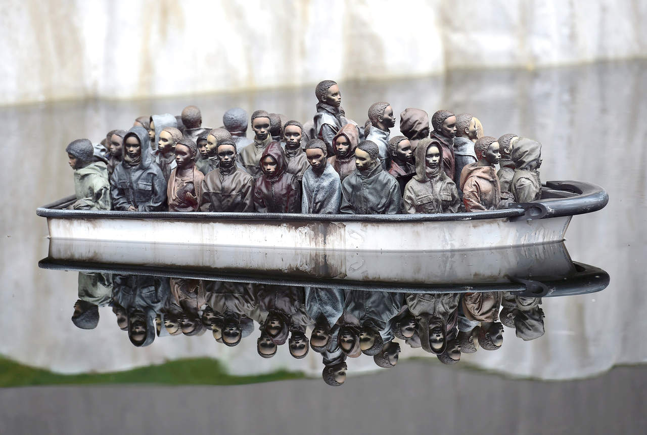 Hay otros creadores, de otras disciplinas, más y menos famosos, con mayor o menor proyección que han puesto manos a la obra para ocuparse del tema. El misterioso grafitero Banksy realizó proyectos como Dismaland, una parodia de Disneyland, o su representación de la Cosette envuelta en una nube de gas lacrimógeno o el mural en que recordaba al mundo que Steve Jobbs era hijo de inmigrantes sirios. Abdalah el Areth, al lado de una docena de jóvenes estudiantes de arte, pintó entre los escombros de la derruida Damasco para mostrar que la vida renace en mitad del dolor y el sufrimiento. Doris Salcedo, colombiana, preparó una instalación con placas que se llenan de agua lentamente para formar los nombres de aquellos que se han ahogado en el Mediterráneo mientras viajaban en busca de seguridad. El danés E. B. Itso recogió múltiples objetos dejados atrás por los migrantes en Lampedusa y luego los utilizó para hacer impresiones abstractas en papel. Bern O’Donoghue, artista británica, realiza proyectos de instalación e intervención de espacios públicos con barquitos de papel… El etcétera es larguísimo.