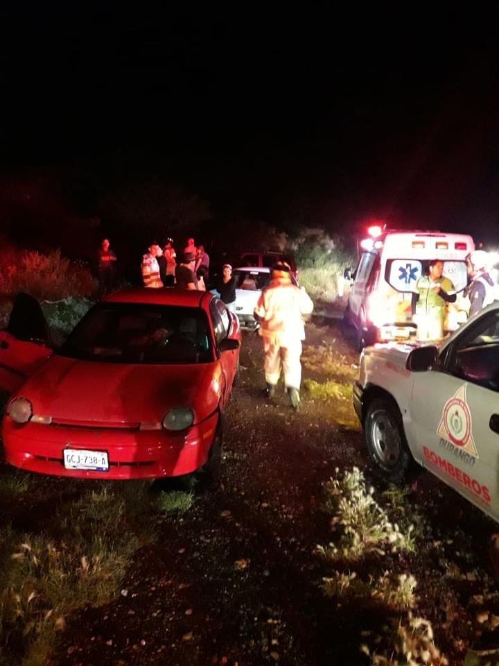 Elementos de Protección Civil Municipal atendieron un reporte de emergencia tras el choque de cinco vehículos, en la carretera libre Durango-Mazatlán. El hecho se dio en el kilómetro 14, donde repentinamente David Gerardo frenó su auto y fue impactado por un Neón rojo, que a su vez recibió el choque de un Tsuru blanco, y este el de un Fiesta negro, que finalmente fue impactado por una camioneta Patriot. (DMPC)