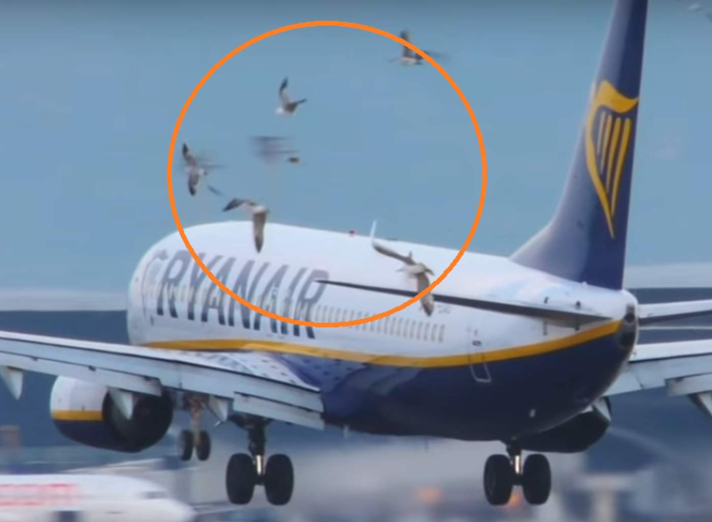 La escena ocurrió el 5 de mayo de 2018 en el aeropuerto El Prat, de Barcelona, cuando un avión Boeing 737-800 de la aerolínea Ryanair se cruza con una parvada de gaviotas. Varias de estas aves impactan contra el avión y hasta con los motores de la aeronave, afortunadamente ninguna provoca daños que alteraran su funcionamiento.