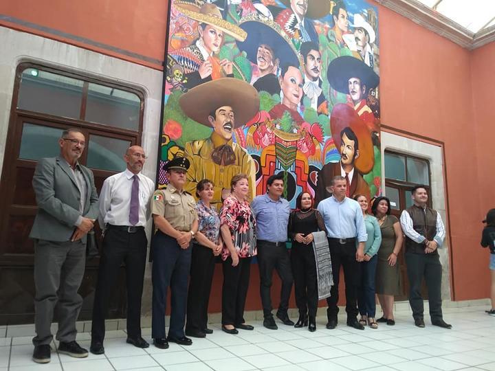 Un colorido mural de 4x6 metros que rinde tributo a las leyendas de la música mexicana y en el que destacan diferentes elementos tradicionales del país fue develado esta tarde en el patio principal de la Escuela de la Música Mexicana (Esmumex) ante invitados especiales, personal de la institución, parte de la comunidad artística, padres de familia y público en general.