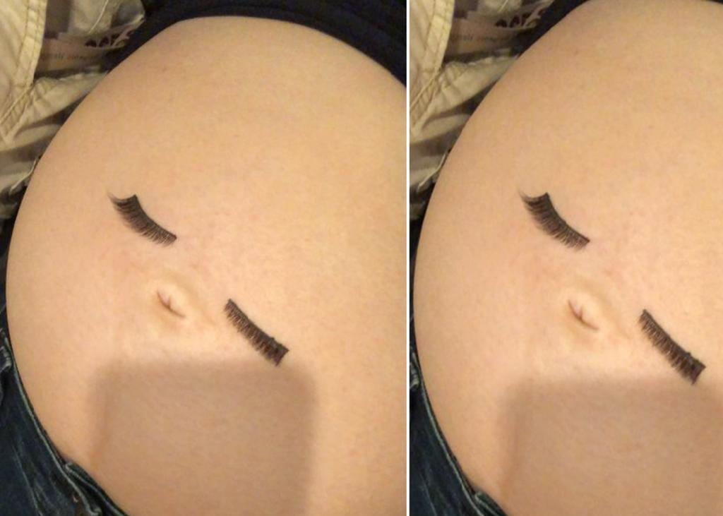 "Puse pestañas en mi vientre y luego me reí por tres minutos seguidos. Mi vientre dijo UwU", escribió esta mujer, cuya publicación se ha hecho viral.