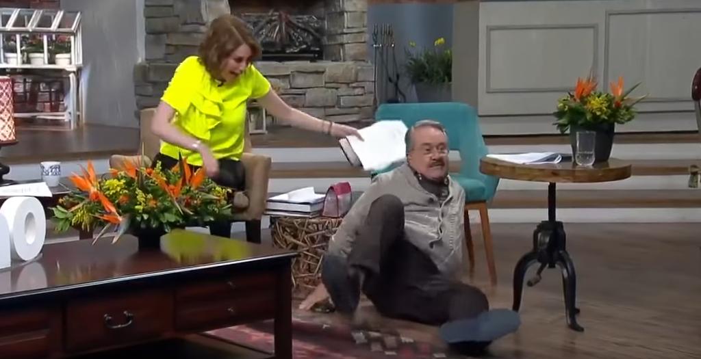 Pedro Sola desató las carcajadas entre sus compañeros de "Ventaneando" al perder el equilibrio y terminar en el suelo.