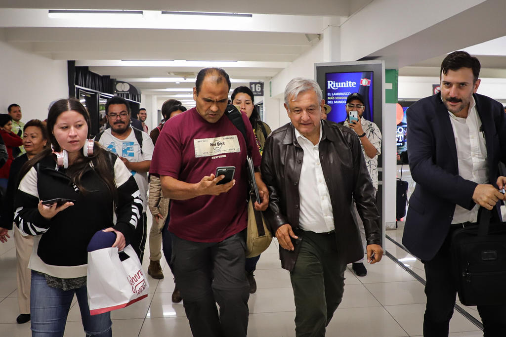 Al abordar el vuelo 533 de Aeroméxico, con destino a Mérida, Yucatán, el capitán Rafael Bolio le dio la bienvenida al presidente Andrés Manuel López Obrador y le dijo que ojalá lo puedan convencer que construya el aeropuerto en Texcoco, Estado de México.