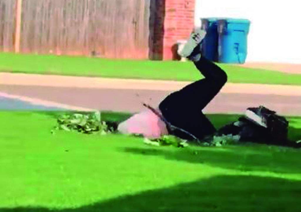 Una chica de Estados Unidos se encontraba limpiando las ramas de un árbol, pero al intentar retirar una rama, cayó al piso con la cara de frente.