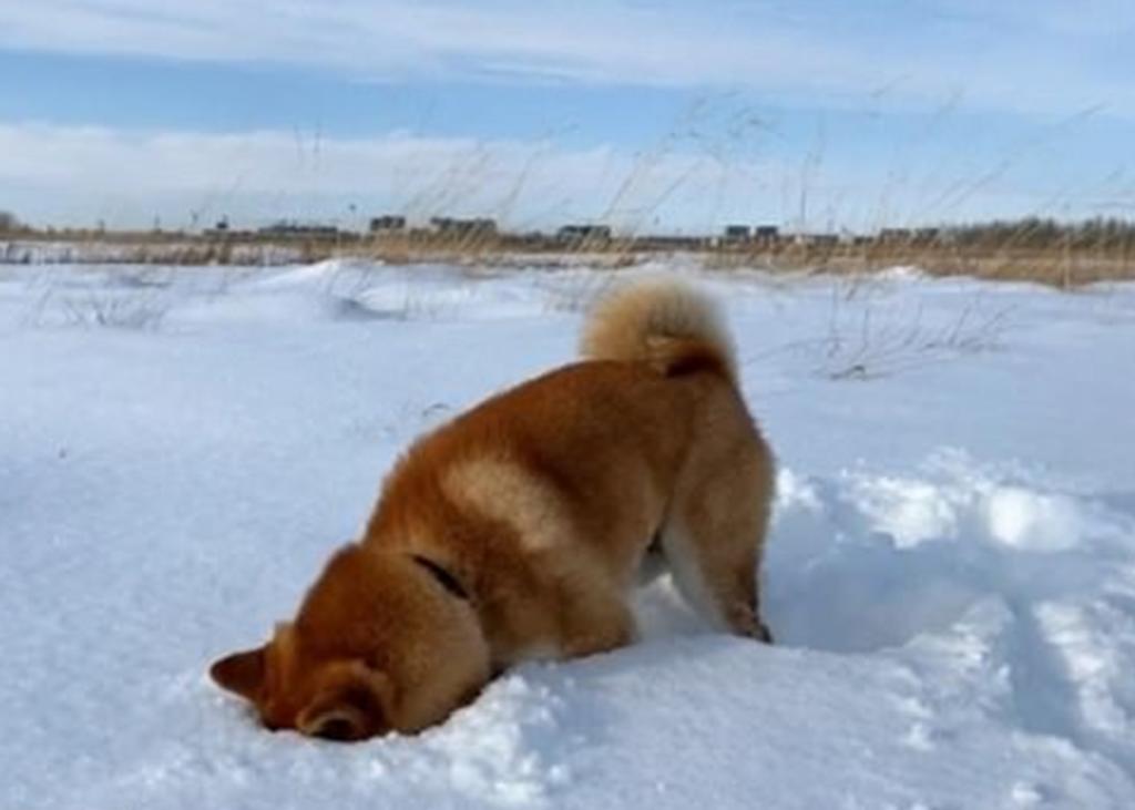 El video de una mascota curiosa la que le gusta jugar en la nieve y, especialmente, esconder su cabeza en ella, se está haciendo viral.