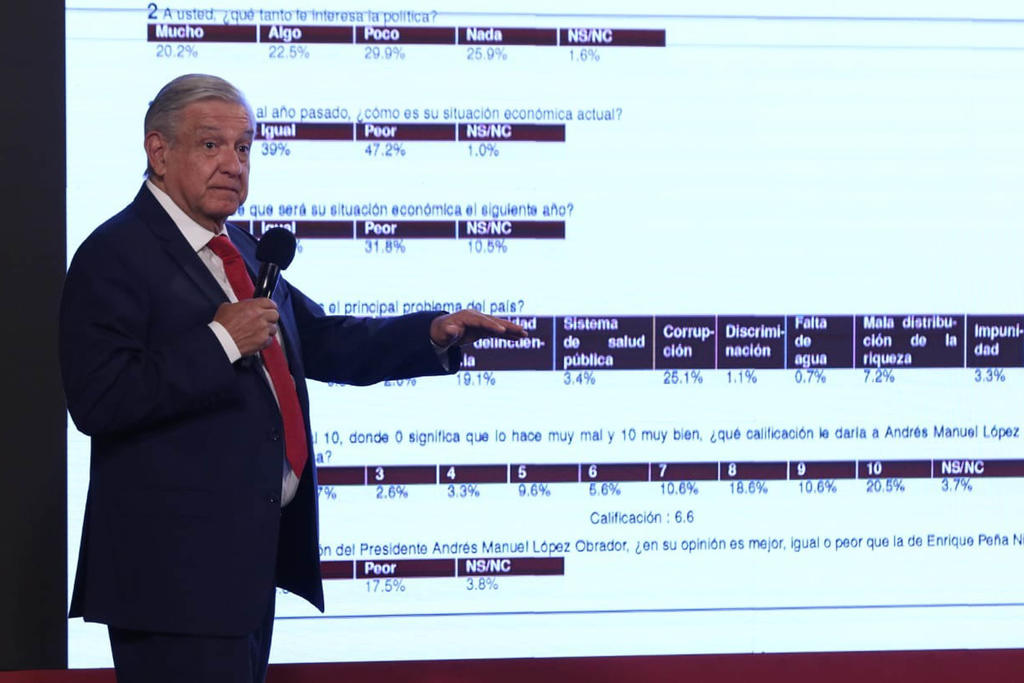 El mandatario adelantó que periódicamente presentará esta encuesta "para que toda la gente sepa. Claro, como hay libertad, cualquiera puede hacer su encuesta, vamos a dar a conocer periódicamente la nuestra".
