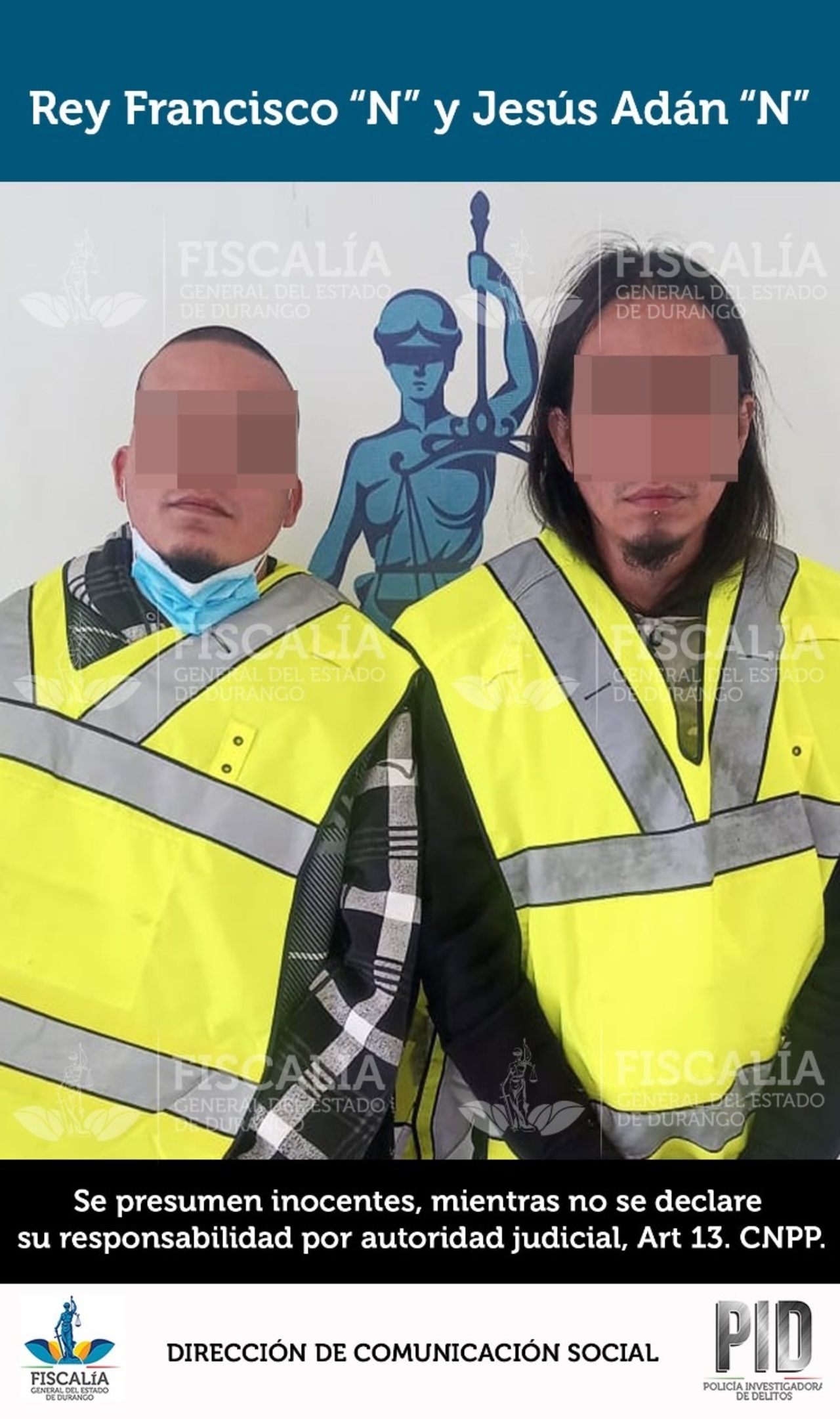 La Fiscalía General del Estado de Durango (FGE), informó que a través del Agente del Ministerio Público adscrito a la Unidad de Delitos de Investigación de Homicidios, y mediante los elementos de prueba que robustecen la carpeta de investigación, logró que el Juez vinculara a proceso a Rey Francisco y Jesús Adán, de 26 y 30 años de edad, respectivamente, por la probable comisión del delito de homicidio calificado, en agravio de quien en vida respondiera al nombre David Perales González, de 24 años, quien falleció a causa de una herida punzocortante penetrante de tórax.