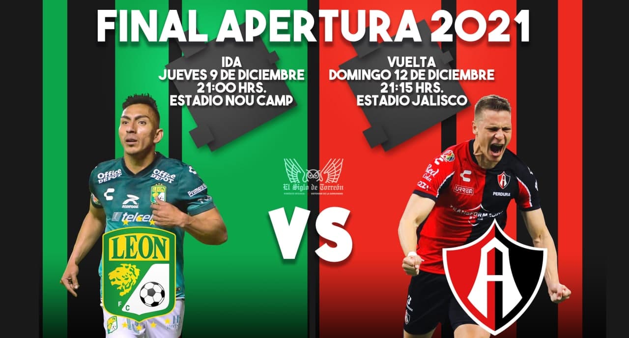 Los Rojinegros del Atlas, de vuelta en una final después de más 22 años, visitarán el próximo jueves al León en el inicio de la serie que decidirá el campeón del torneo Apertura 2021 del fútbol mexicano.