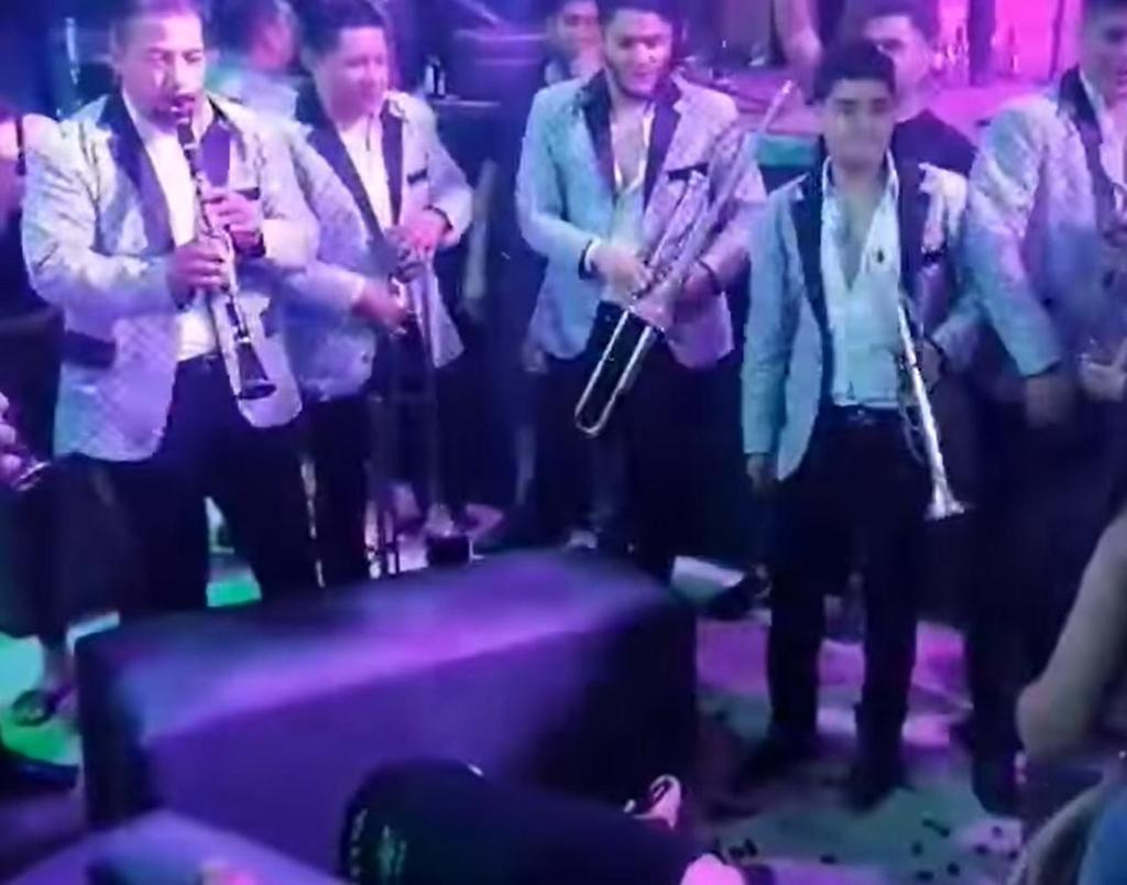 Cuando los integrantes de la agrupación se dan cuenta que el lagunero ya está tirado en el suelo, junto a unos sillones tipo "lounge", ellos se le acercan para tocarle casi en los oídos el tema Arriba Pichataro.y ni así lo lograron despertar.