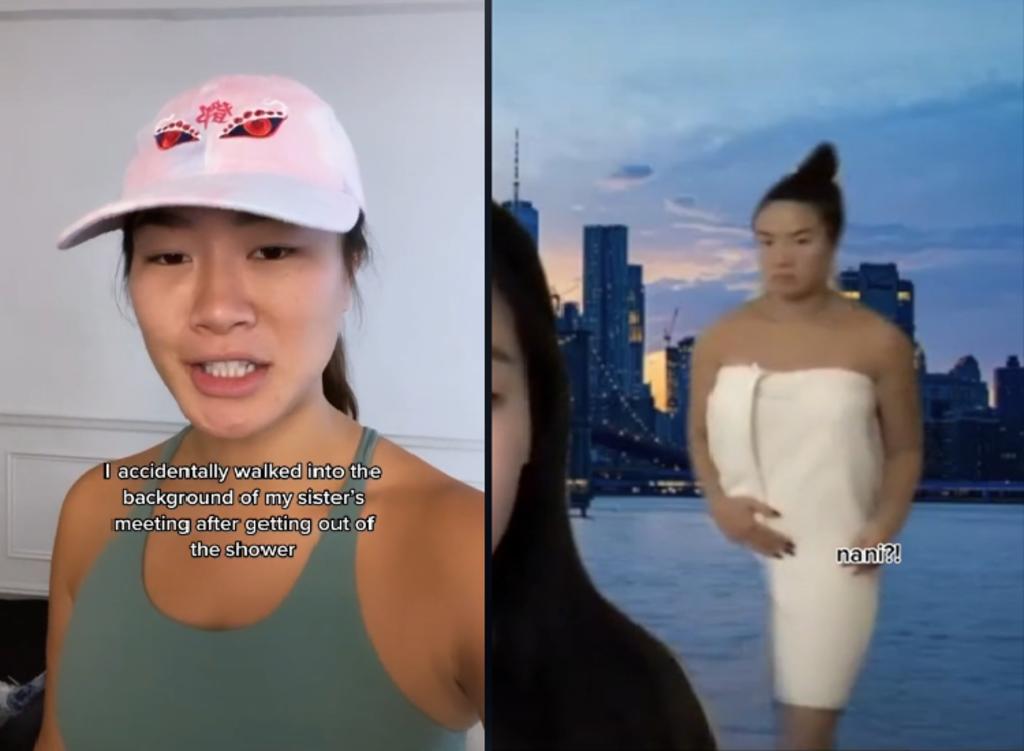 Una mujer reveló a través de TikTok que accidentalmente apareció en una videollamada de trabajo de su hermana, cuando acababa de salir de bañarse.