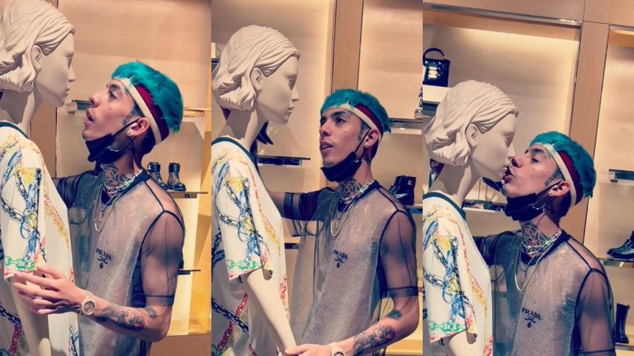 Natanael Cano se 'liga' a un maniquí mientras presume sus compras de 'nuevo rico'