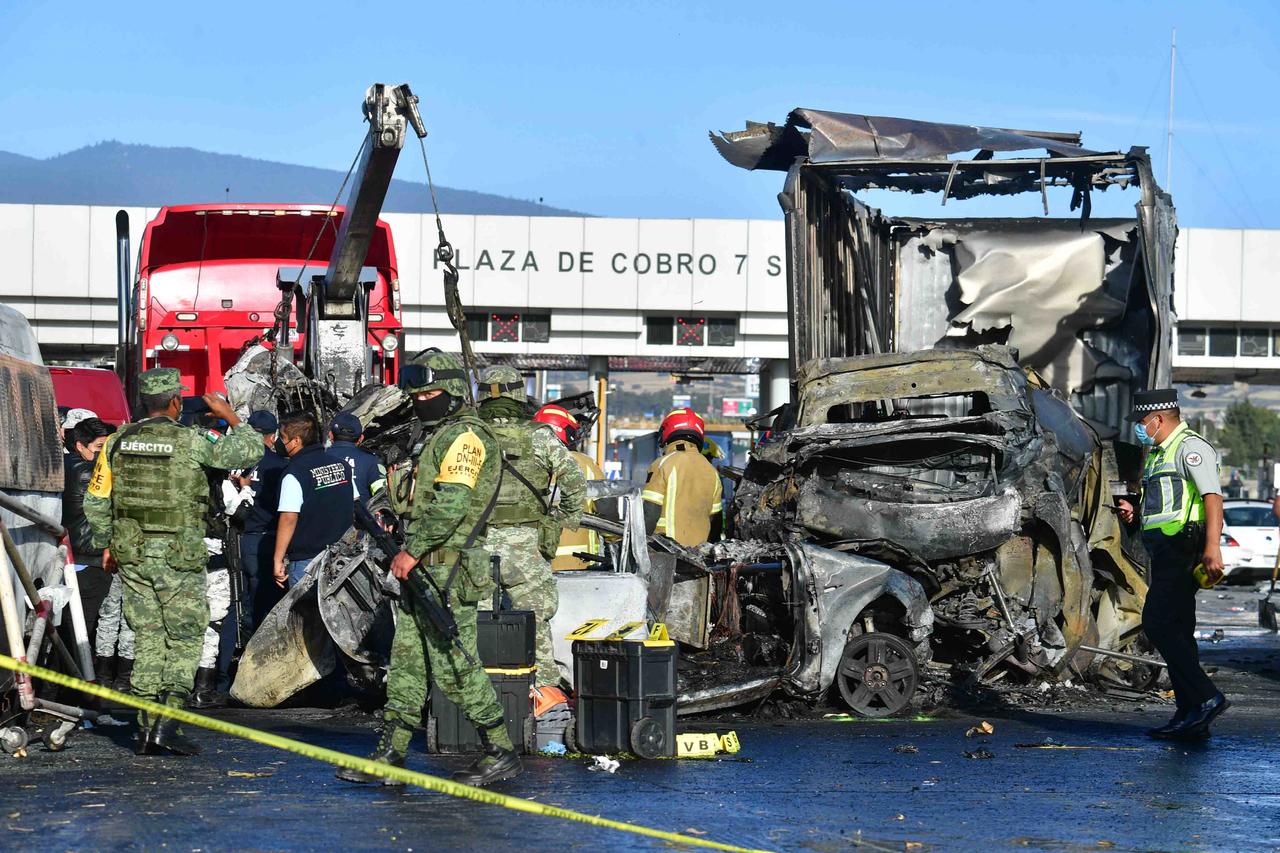 En los videos se observa al tráiler y a los demás vehículos involucrados arden en llamas, luego de que, según el reporte emitido por el subdirector de bomberos municipal, Adrián Díaz Chávez, el camión de carga ya iba en llamas cuando se estrelló contra los autos que se encontraban estacionados en la caseta.