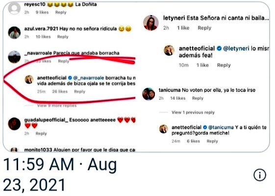 Eso sí, Anette también ha generado comentarios muy positivos de fans, quienes la apoyan para que siga cantando y ellos les contesta con emojis de besos o de otra naturaleza.