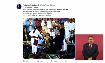 "Es un secreto a voces. AMLO recurre a diario a la BRUJERÍA, SANTERÍA, MAGIA NEGRA y RITUALES DE MUERTE, para llegar y acumular PODER. Ya tuvo lo que quiso… ahora va de regreso. Eso se llama KARMA o JUSTICIA DIVINA".