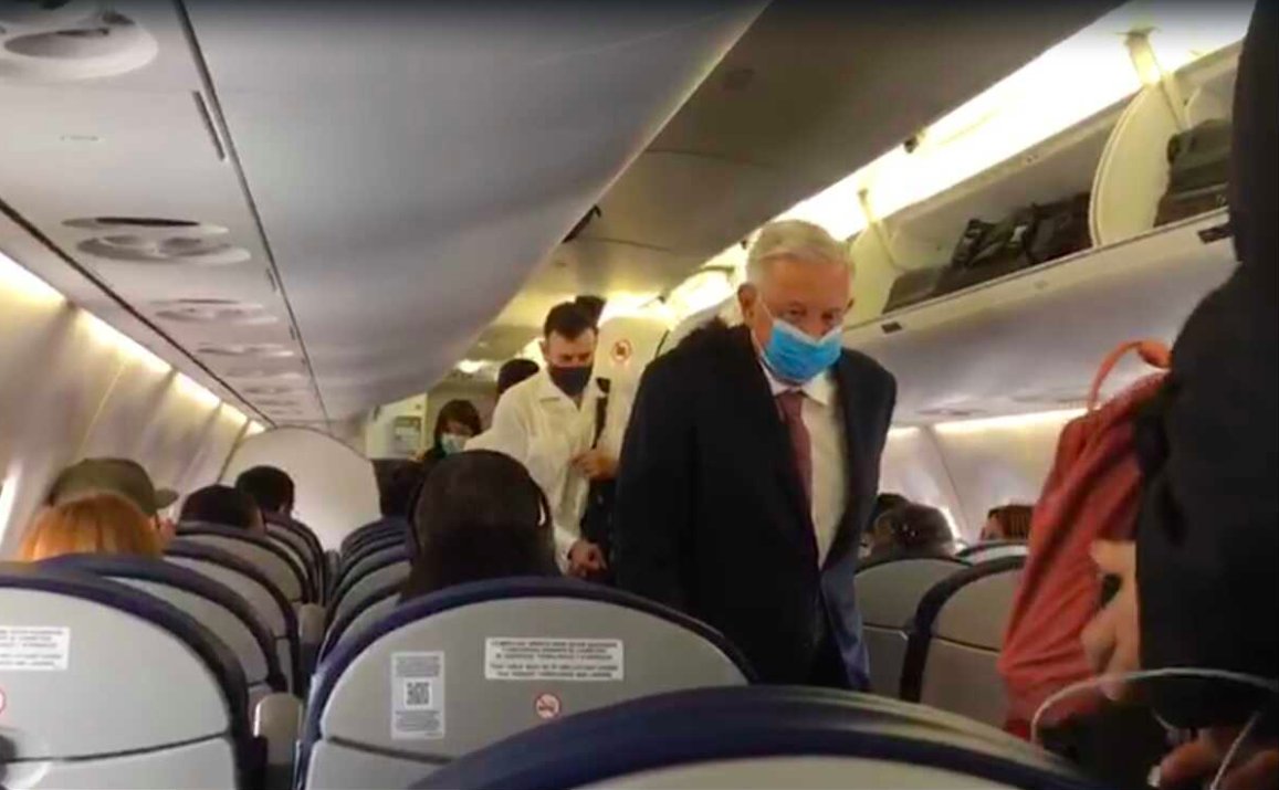 El presidente López Obrador viaja acompañado por su equipo de Ayudantía, que coordina Daniel Asaf.