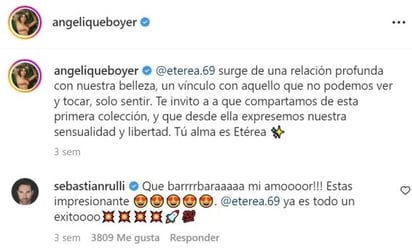 En las fotos en la que Angelique modela los bikinis, Sebastián le dedicó mensajes de admiración y amor.