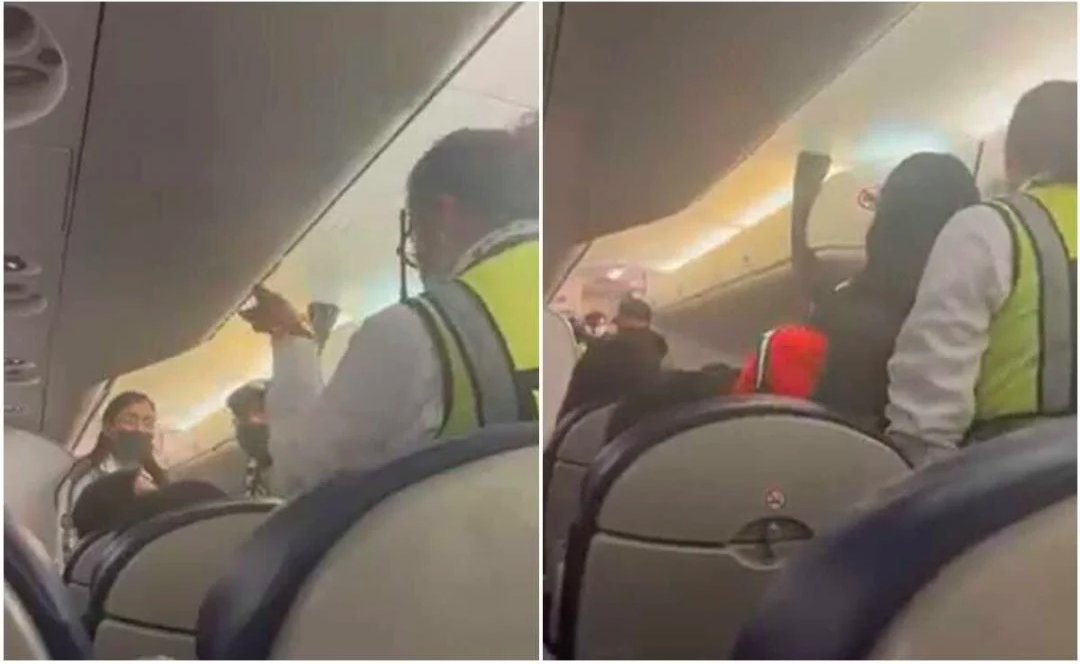 En un video que circula en redes sociales se observa cómo personas con chalecos amarillo neón y aparatos de radiocomunicación ordenan a la familia descender del vuelo. "Usted dígame, ¿traigo al personal competente o usted de baja por su cuenta?", se escucha cuestionar a una mujer al padre, quien termina por dejar la aeronave junto con su familia.