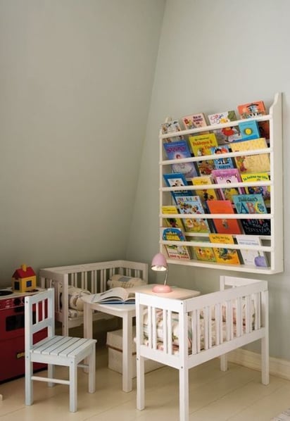 No tiene que ser uno grande. Basta incluso con algunas repisas en las que puedas tener los cuentos que vas a querer leerle por las noches.