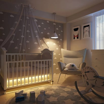 Una iluminación muy intensa podría lastimar sus ojitos, así que opta por focos que emitan luz tenue, cálida para dar una sensación más armónica en la habitación.