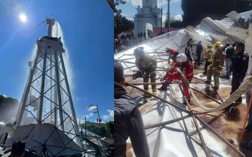 Un tanque de agua elevado colapsó este miércoles en San Martín, Texmelucan, en Puebla.