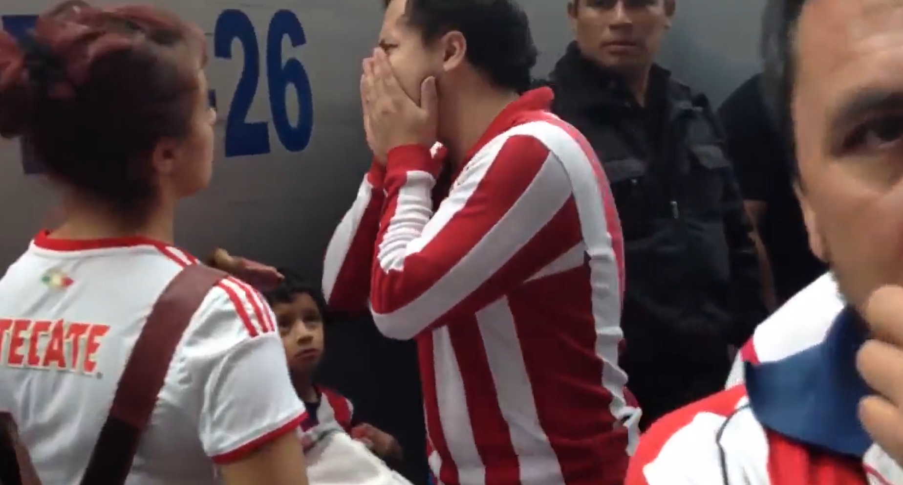 'Ya Gonzalo, tus hijos te están viendo, compórtate", le dice un hombre al fanático de Las Chivas luego de que tirara un puñetazo contra una pared, pese a la presencia de menores de edad.