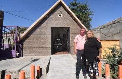 Es única en su tipo en la región Lagunera. Se trata de la capilla a la Santa Muerte, construida hace cuatro años en calle Papiro en el 1904 de la colonia El Amigo en Gómez Palacio. Abril Martínez y Fernando Alanís, son quienes la levantaron en agradecimiento a los favores concedidos por su intercesión. Cientos de devotos han llegado a congregarse en cada uno de sus festejos y este año aseguran, no será la excepción.