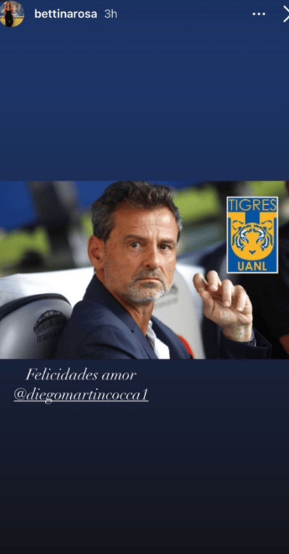 “Felicidades amor @diegomartincocca1”, escribió junto a una imagen de él y en la que colocó el escudo de Tigres.