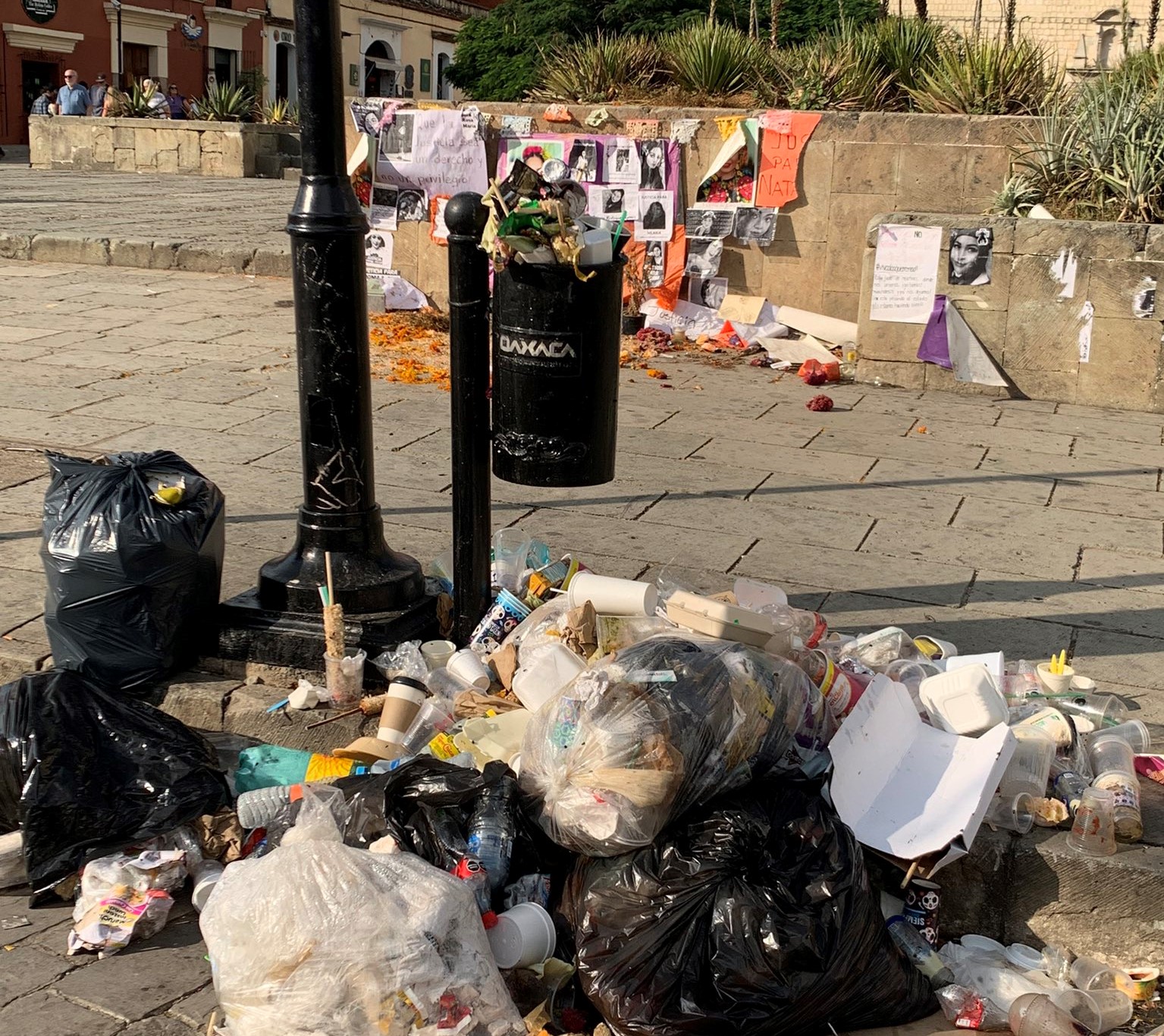 “Conozco Oaxaca desde hace un par de años, voy a visitar o comprar cosas al mercado. Y llego literal a la esquina de la una de las esquinas del Zócalo y estaba y me encuentro con, no sé, 50 kilos de basura”, dijo Giorgi. Agregó que el problema es que un turista o alguien que viene de fuera de Oaxaca “no sabría que había un problema tan grave de basura”.