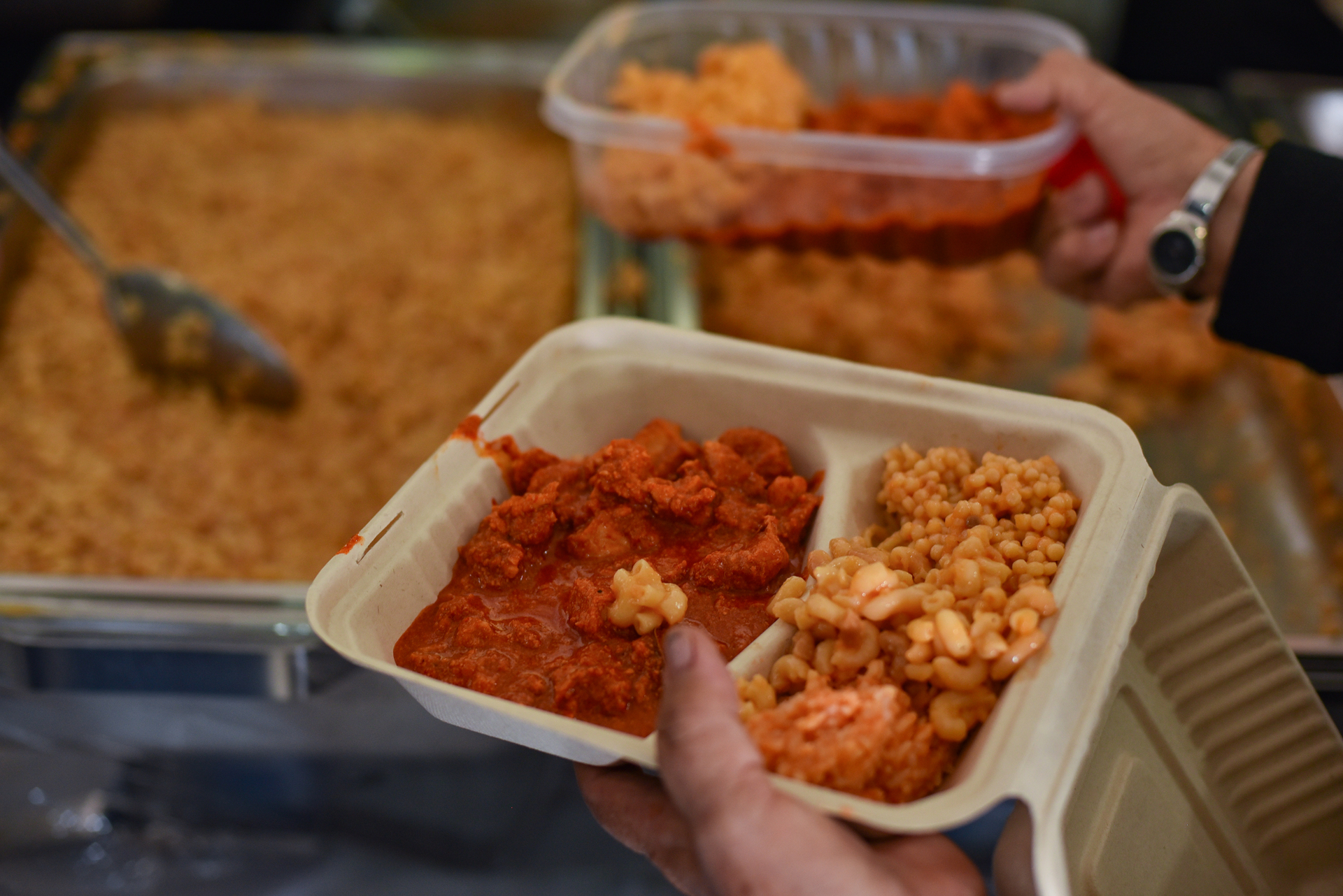 Una vez terminado el rezo, se procede a la distribución de la parte gastronómica de la 'reliquia'. La familia y los invitados especiales comen en los platos de la casa; los vecinos que no fueron al rezo pero sí a la distribución de la comida, suelen llevar sus propios platos.