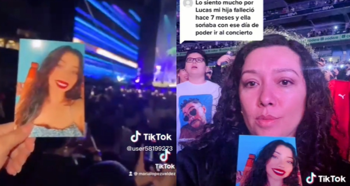 Asimismo, en la grabación se observa a la mamá con una foto de su hija en pleno concierto de Bad Bunny en el estadio BBVA de Monterrey, Nuevo León.