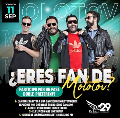 Tras cinco años de su última visita a Durango, la agrupación mexicana Molotov regresa a esta ciudad el próximo domingo, con un show de su actual gira por Latinoamérica "Estalla Molotov 2022".