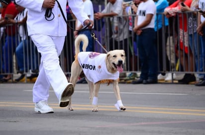 'Nerón', perrito rescatado por la Marina formó parte del desfile militar de Tabasco