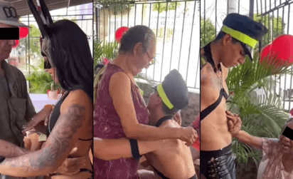 En una serie de imágenes compartidas en redes sociales, se observa a varios “strippers” realizando bailes eróticos acompañados de los abuelitos y abuelitas del asilo, así como algunos juegos y pasteles con formas sugerentes.
