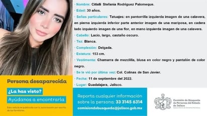 Al igual que su novio fue vista por última vez en la colonia Colinas de San Javier en Guadalajara. Citlali es una influencer de estilo de vida saludable.