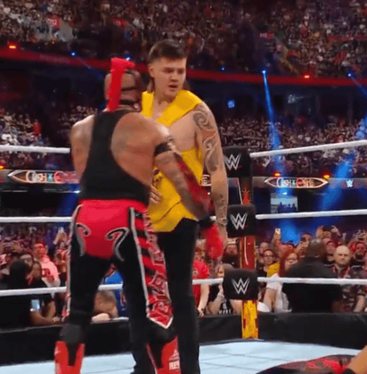 Así que en el Premium Live Event que se hizo después de 30 años en territorio británico, la dupla de legendarios gladiadores se sobrepuso a Balor y Priest. En el festejo entre Rey Mysterio y Edge, se subió Dominik al cuadrilátero, ya que durante la lucha estuvo en ringside para cuidar las espaldas de su padre.