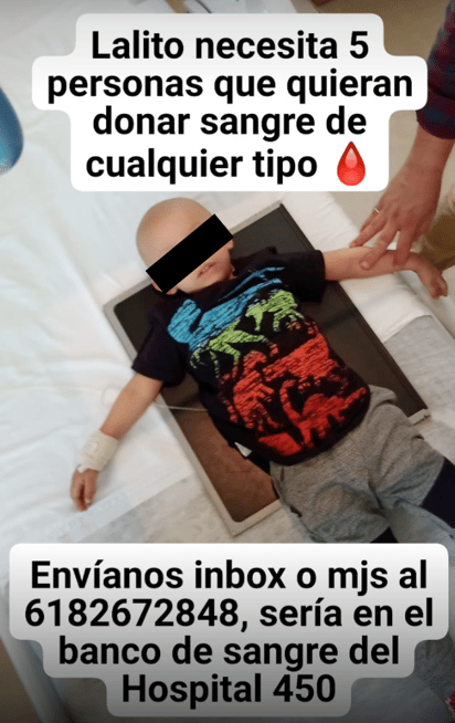 A través de redes sociales, la familia de un menor de tres años de edad, solicitó el apoyo de los duranguenses para conseguir donadores de sangre.