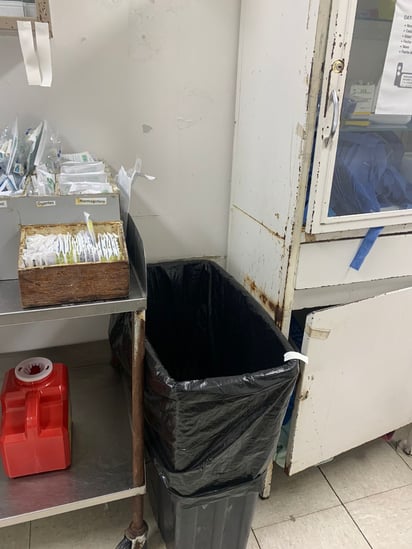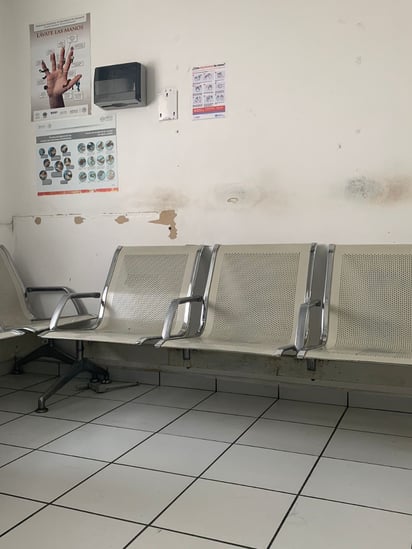 Derechohabientes que han acudido a solicitar los servicios de Urgencias en los últimos días nos hicieron llegar las imágenes captadas en las áreas donde se supone deberían ser atendidos con higiene, seguridad y garantía; pues se han encontrado con mobiliario desgastado, paredes embarradas de sangre seca de hace tiempo, equipamiento plagado de hongos por humedad y, por consecuencia, un fuerte riesgo de infección.