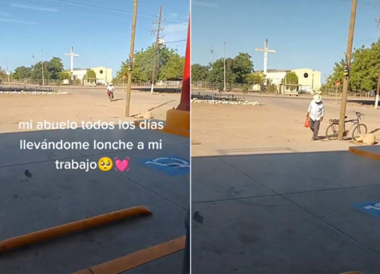 Dieciséis segundos de un video bastaron para que un abuelito se robara el amor de usuarios en redes sociales y se hiciera viral, pues diario lleva el "lonche" a su nieta.